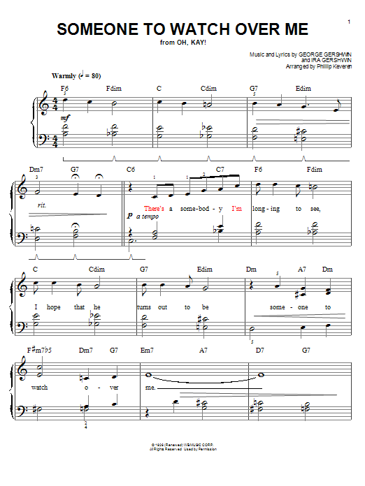 Download or print George Gershwin Someone To Watch Over Me (arr. Phillip Keveren) sheet music, chords and digital score arranged for Piano Solo. This Jazz score includes 3 page(s).