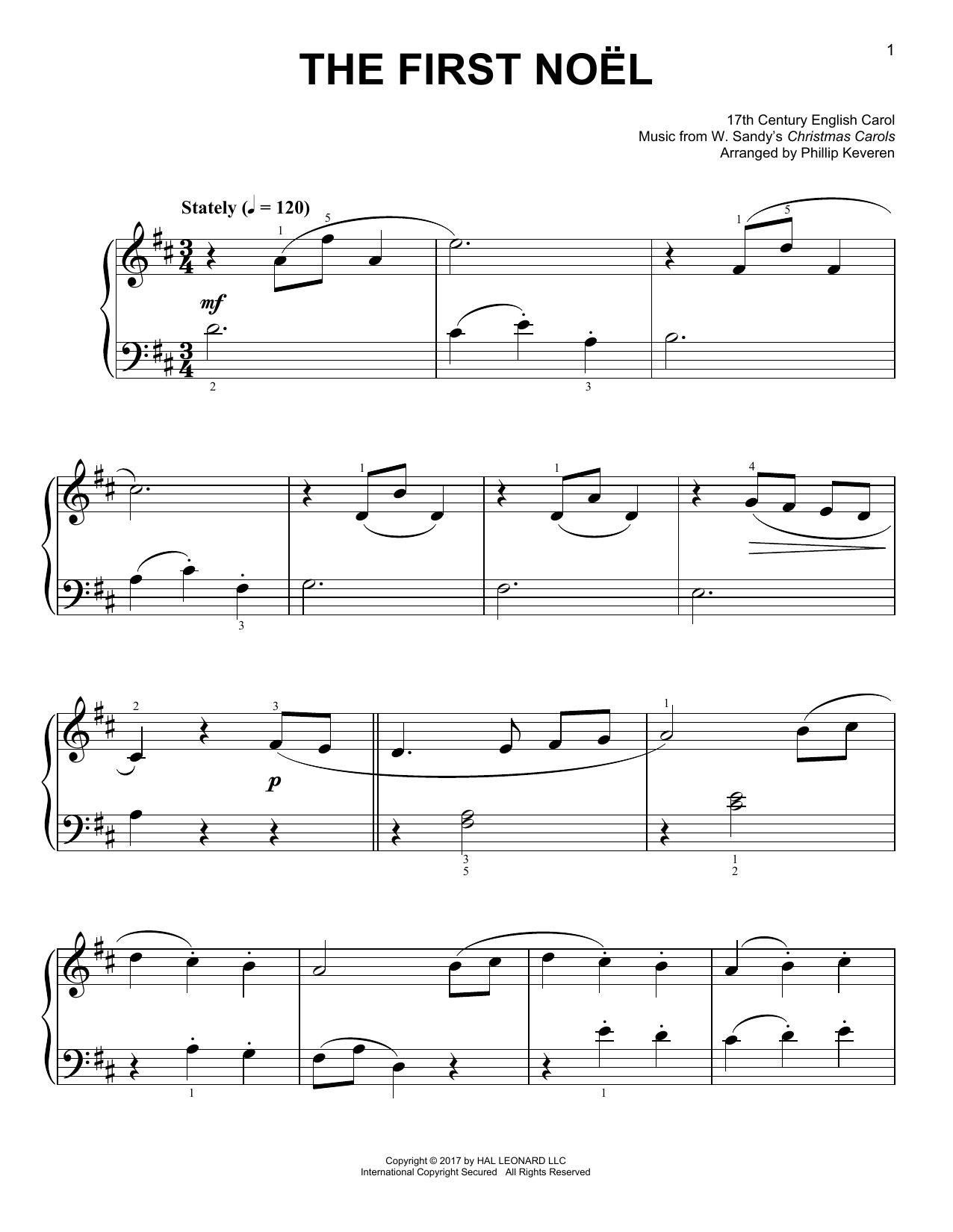Download or print 17th Century English Carol The First Noel [Classical version] (arr. Phillip Keveren) sheet music, chords and digital score arranged for Easy Piano. This Christmas score includes 4 page(s).