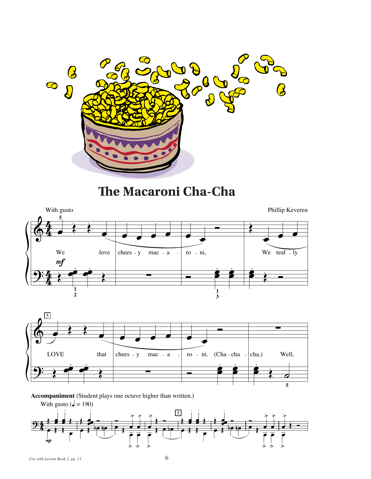 Download or print Phillip Keveren The Macaroni Cha-Cha sheet music, chords and digital score arranged for Educational Piano. This Instructional score includes 2 page(s).