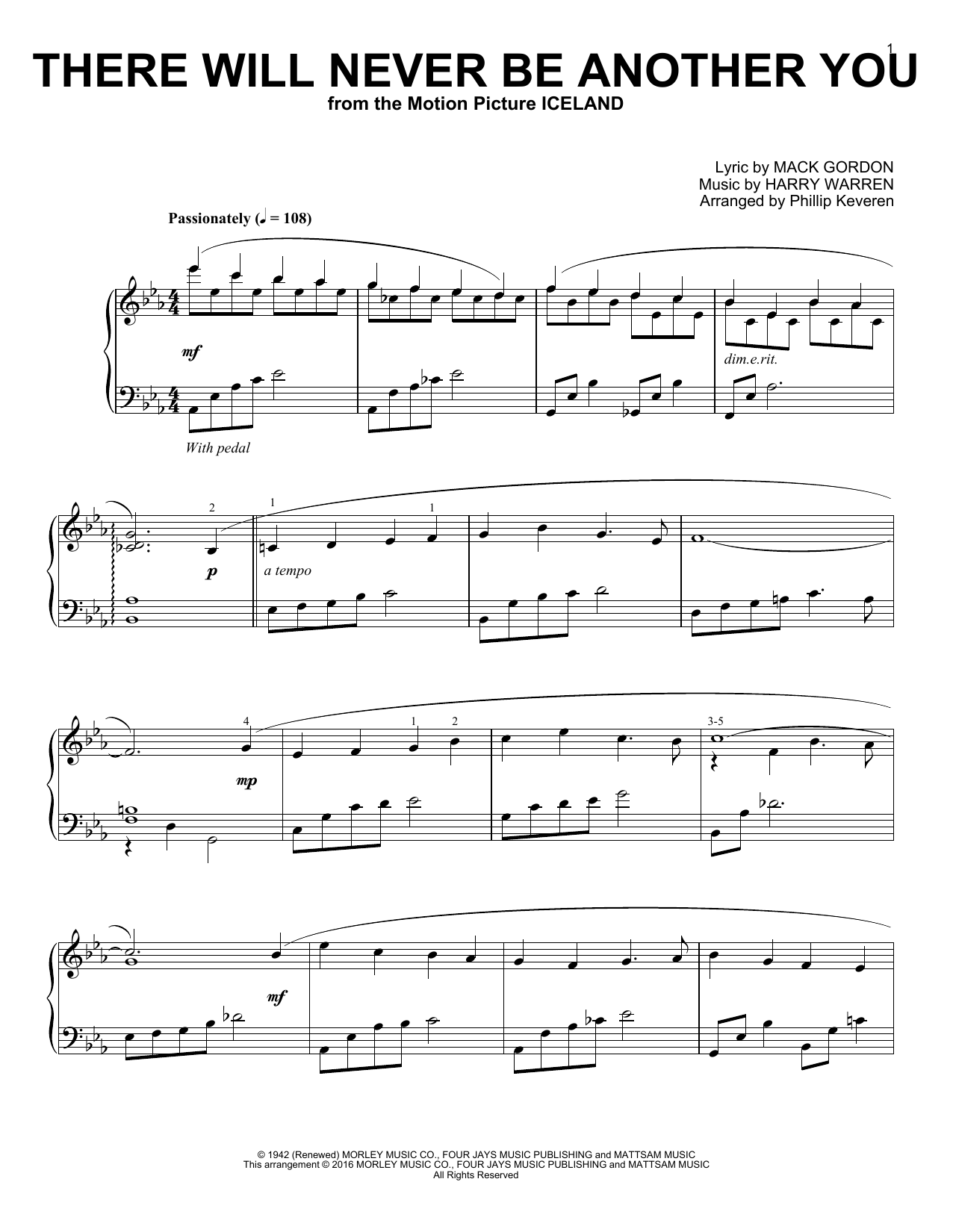 Download or print Mack Gordon There Will Never Be Another You (arr. Phillip Keveren) sheet music, chords and digital score arranged for Piano Solo. This Jazz score includes 2 page(s).