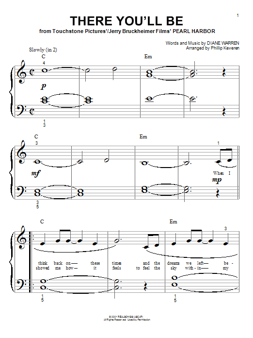 Download or print Faith Hill There You'll Be (arr. Phillip Keveren) sheet music, chords and digital score arranged for Big Note Piano. This Love score includes 4 page(s).
