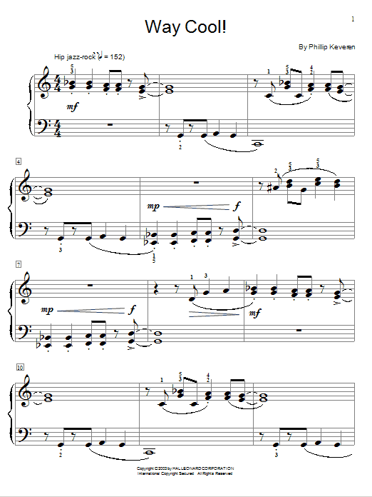 Download or print Phillip Keveren Way Cool! sheet music, chords and digital score arranged for Educational Piano. This Pop score includes 4 page(s).
