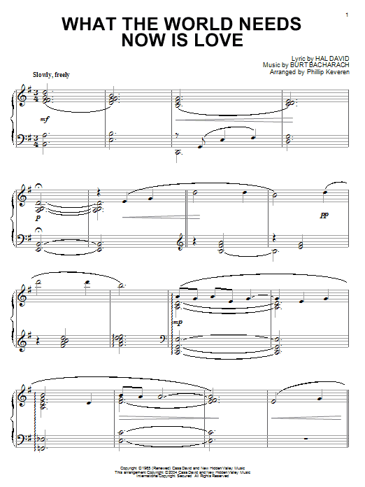 Quick facts What The World Needs Now Is Love (arr. Phillip Keveren) about digital sheet music