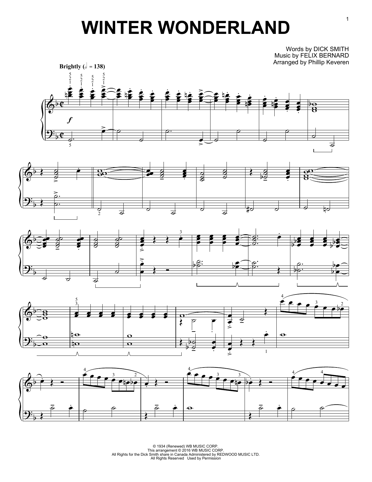Download or print Felix Bernard Winter Wonderland (arr. Phillip Keveren) sheet music, chords and digital score arranged for Piano Solo. This Christmas score includes 3 page(s).