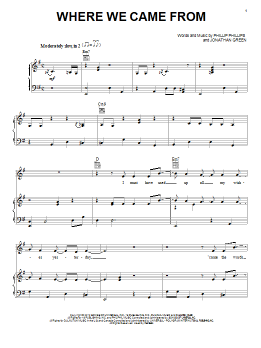 Download or print Phillip Phillips Where We Came From sheet music, chords and digital score arranged for Piano, Vocal & Guitar Chords (Right-Hand Melody). This Pop score includes 8 page(s).