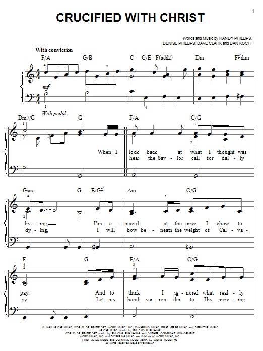 Download or print Phillips, Craig & Dean Crucified With Christ sheet music, chords and digital score arranged for Piano, Vocal & Guitar Chords (Right-Hand Melody). This Christian score includes 9 page(s).