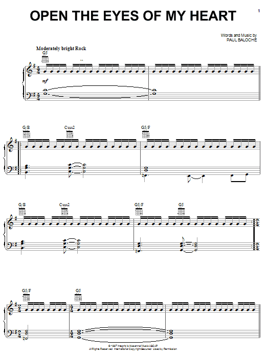 Quick facts Open The Eyes Of My Heart about digital sheet music