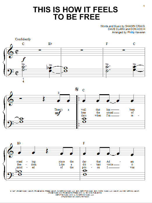 Download or print Phillips, Craig & Dean This Is How It Feels To Be Free (arr. Phillip Keveren) sheet music, chords and digital score arranged for Big Note Piano. This Christian score includes 6 page(s).