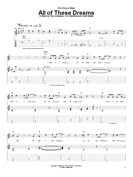 Download or print Phish All Of These Dreams sheet music, chords and digital score arranged for Guitar Tab. This Rock score includes 5 page(s).