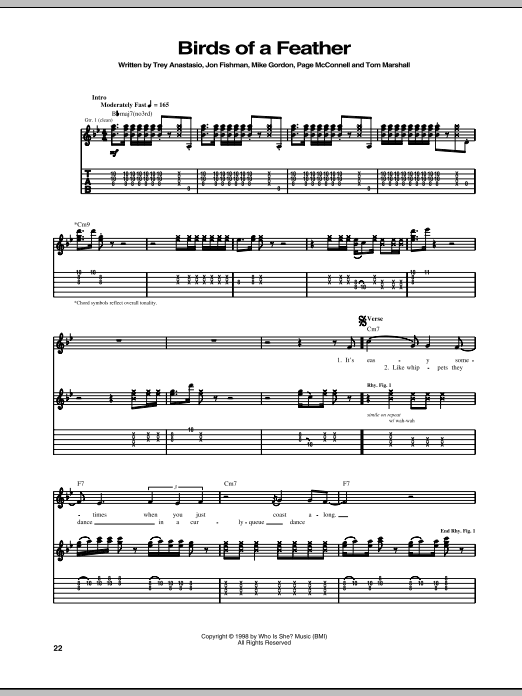 Download or print Phish Birds Of A Feather sheet music, chords and digital score arranged for Guitar Tab. This Alternative score includes 5 page(s).