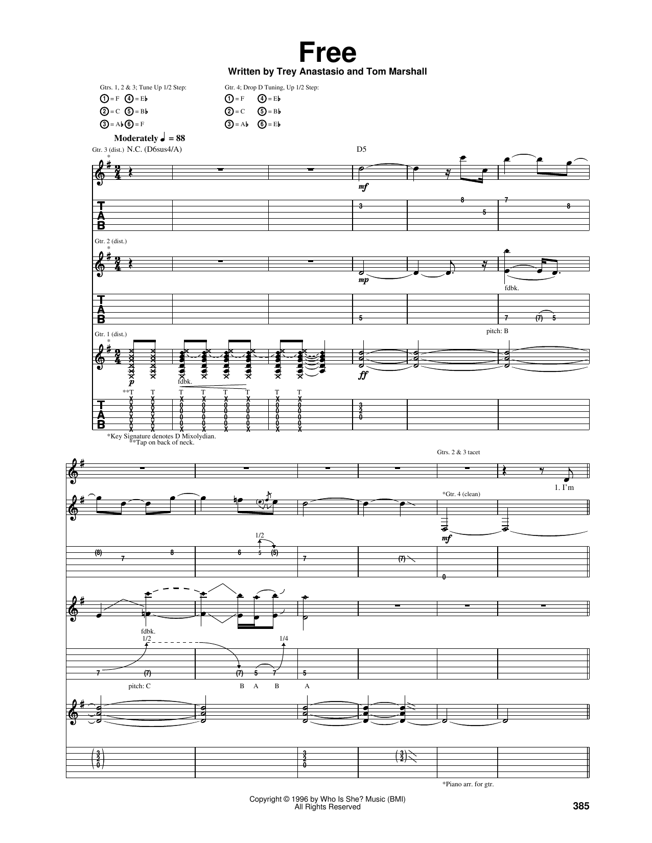 Download or print Phish Free sheet music, chords and digital score arranged for Guitar Tab. This Rock score includes 10 page(s).