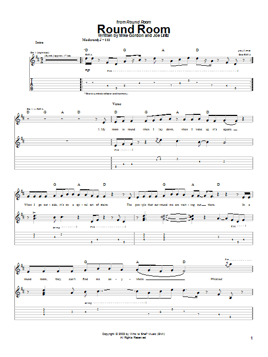 Download or print Phish Round Room sheet music, chords and digital score arranged for Guitar Tab. This Rock score includes 5 page(s).