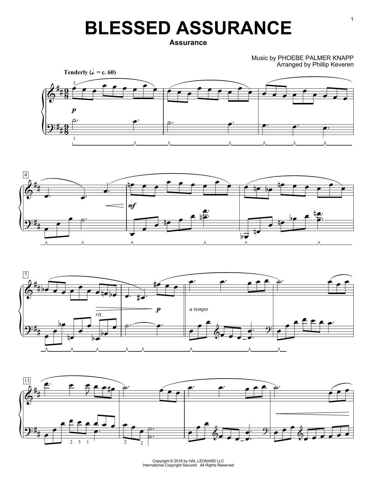 Download or print Phoebe Palmer Knapp Blessed Assurance [Classical version] (arr. Phillip Keveren) sheet music, chords and digital score arranged for Piano Solo. This Hymn score includes 3 page(s).