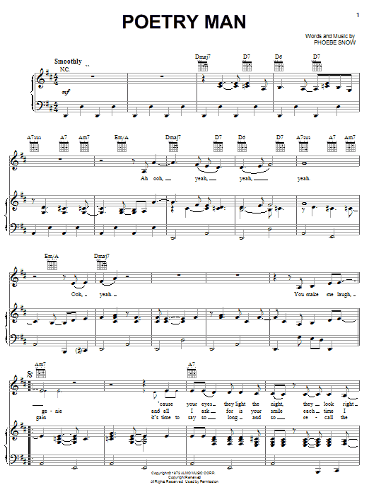 Download or print Phoebe Snow Poetry Man sheet music, chords and digital score arranged for Lead Sheet / Fake Book. This Pop score includes 1 page(s).