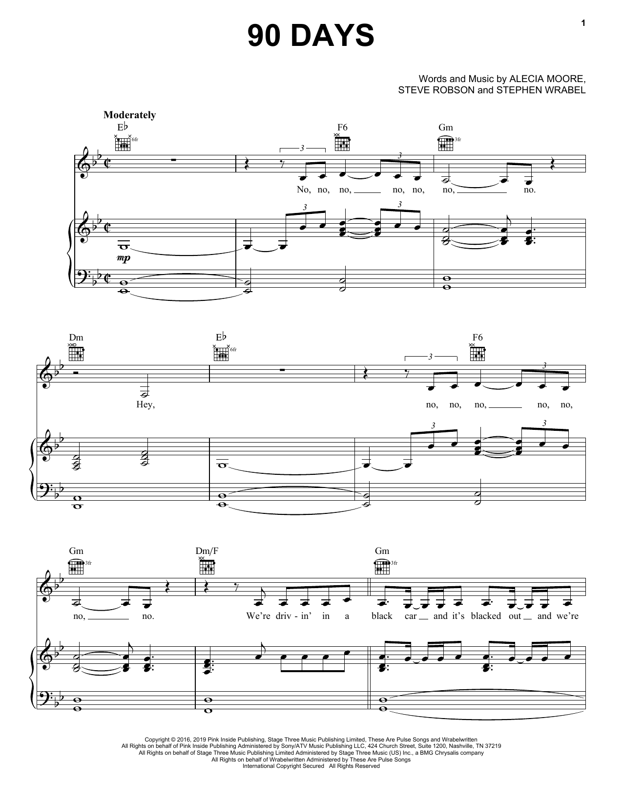 Download or print Pink 90 Days sheet music, chords and digital score arranged for Piano, Vocal & Guitar Chords (Right-Hand Melody). This Pop score includes 9 page(s).