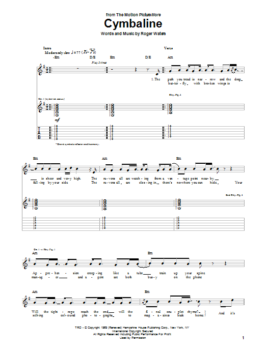 Download or print Pink Floyd Cymbaline sheet music, chords and digital score arranged for Guitar Tab. This Pop score includes 6 page(s).