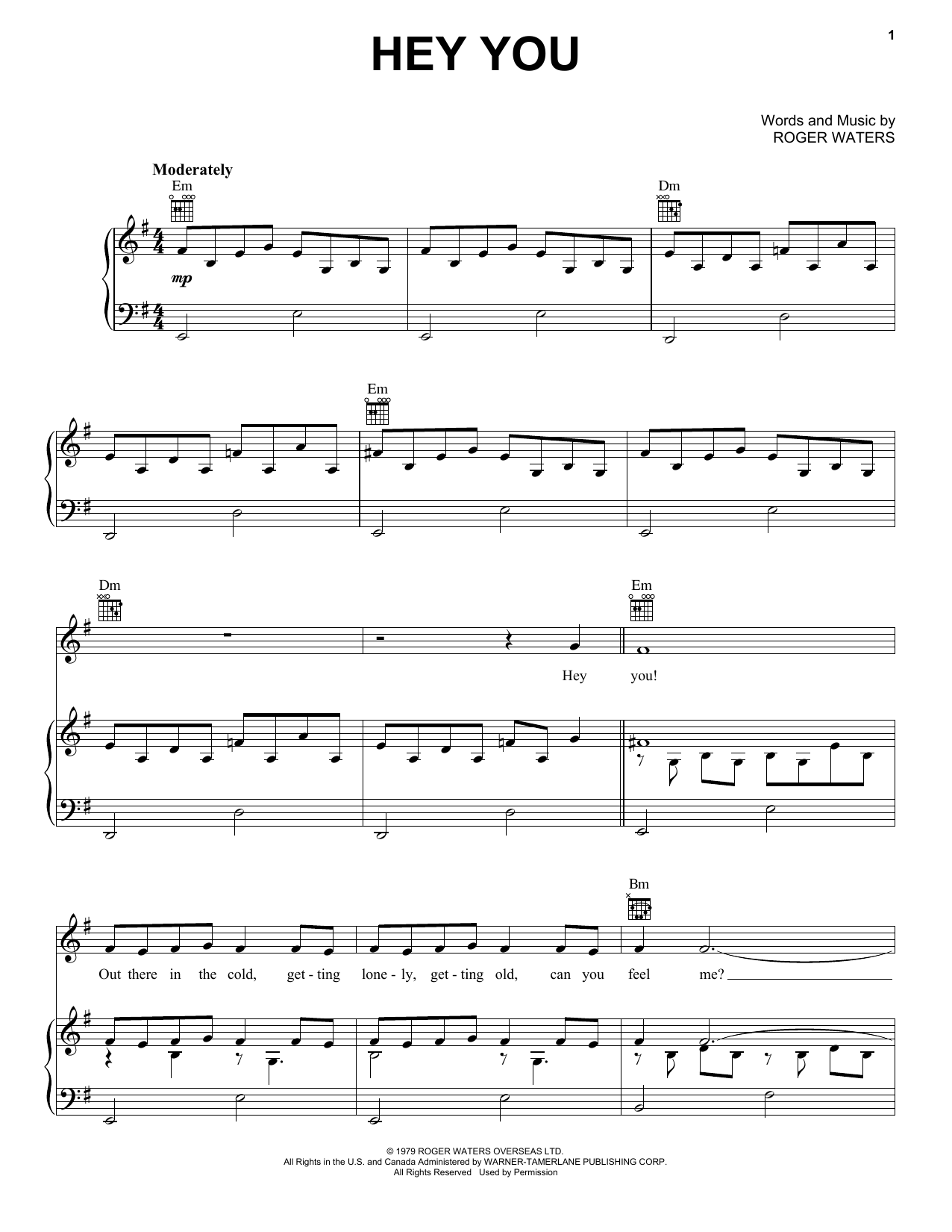 Download or print Pink Floyd Hey You sheet music, chords and digital score arranged for Guitar Tab. This Pop score includes 9 page(s).