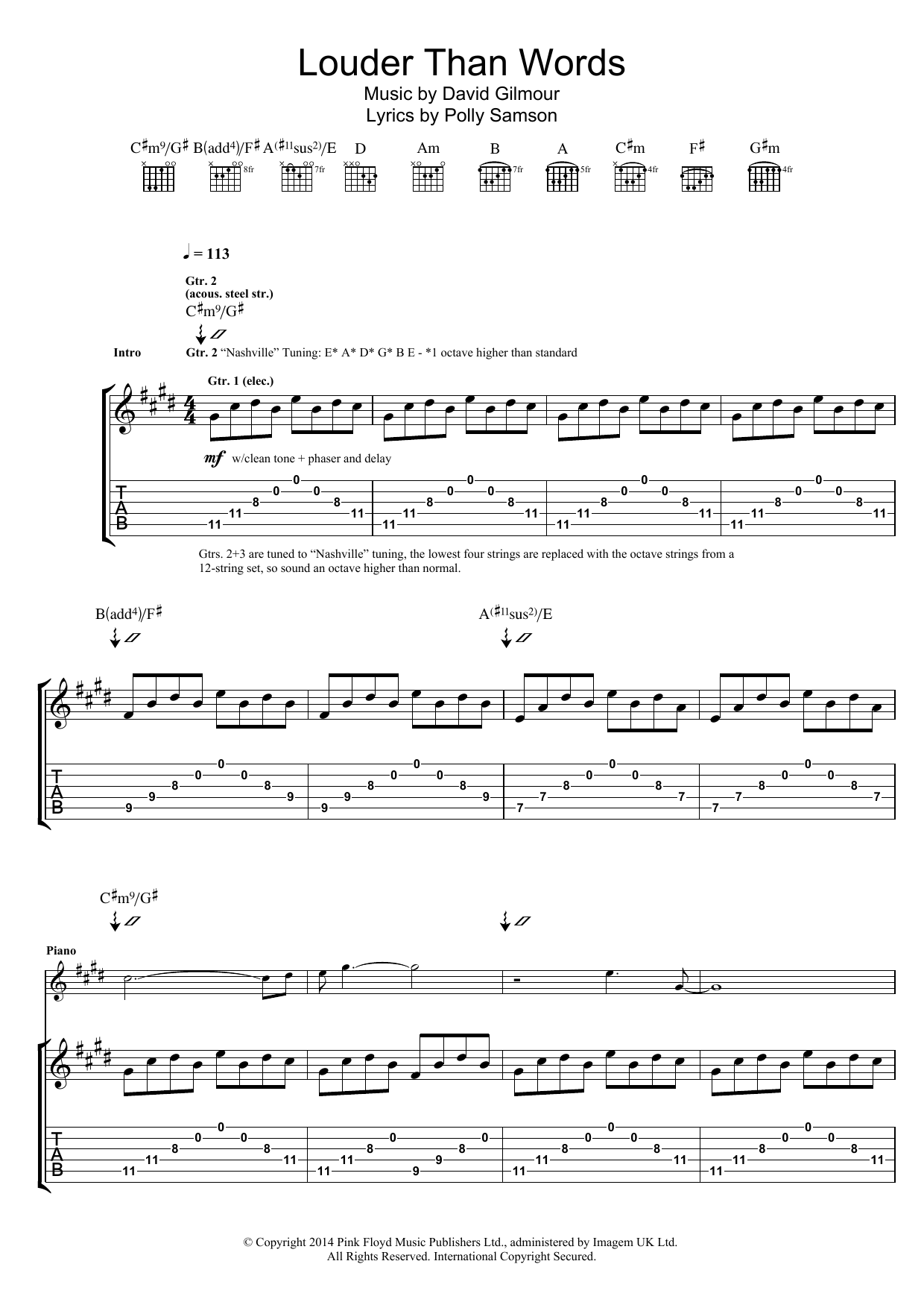 Download or print Pink Floyd Louder Than Words sheet music, chords and digital score arranged for Guitar Tab. This Rock score includes 10 page(s).