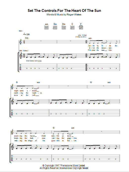 Download or print Pink Floyd Set The Controls For The Heart Of The Sun sheet music, chords and digital score arranged for Guitar Tab. This Pop score includes 3 page(s).