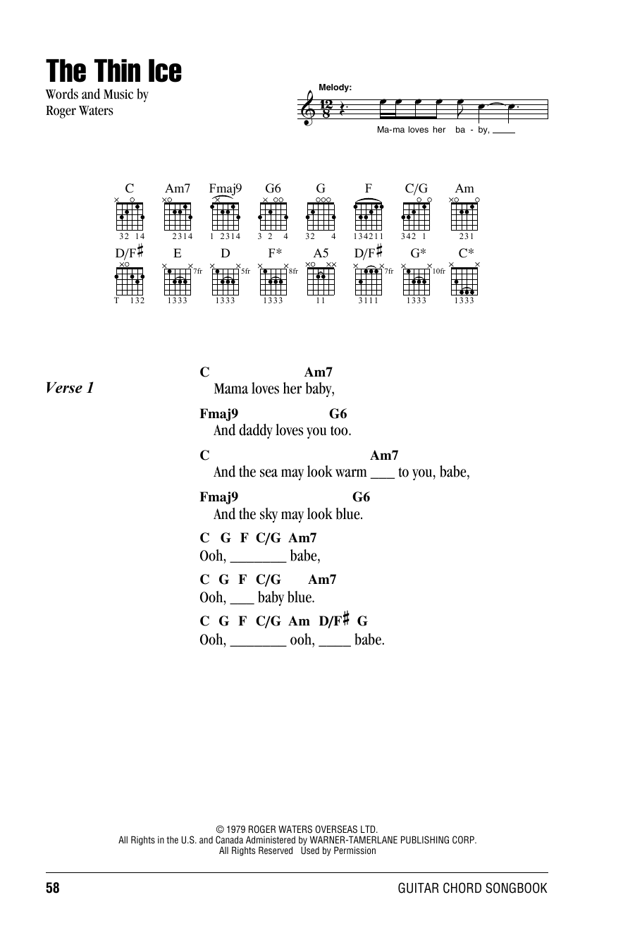 Download or print Pink Floyd The Thin Ice sheet music, chords and digital score arranged for Guitar Tab. This Pop score includes 3 page(s).