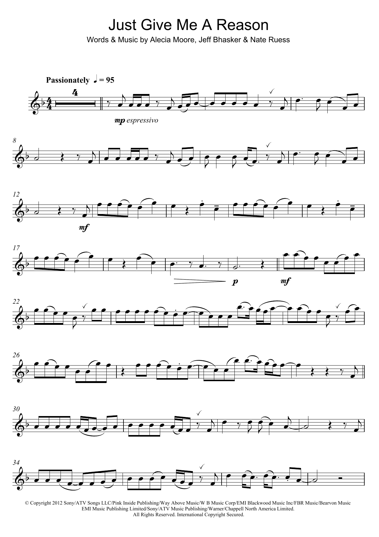 Quick facts Just Give Me A Reason (featuring Nate Ruess) about digital sheet music