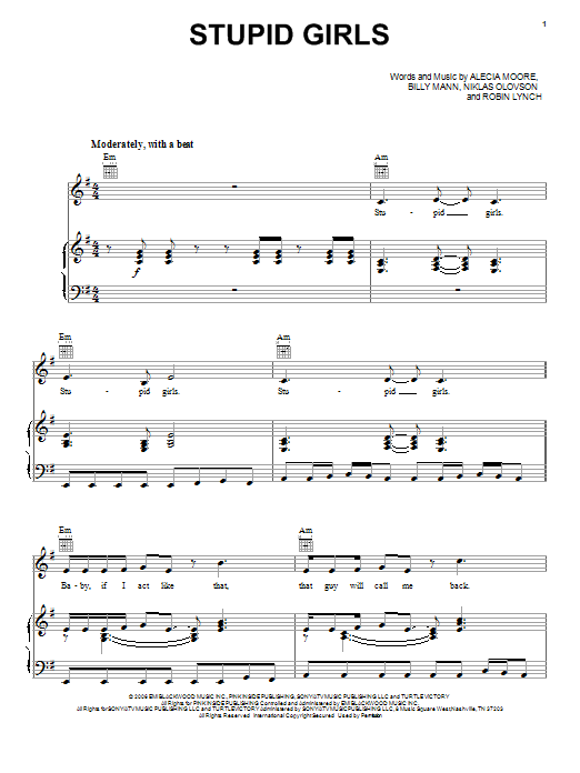 Quick facts Stupid Girls about digital sheet music