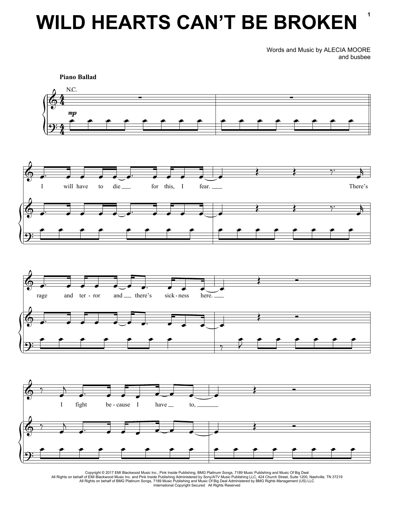 Download or print Pink Wild Hearts Can't Be Broken sheet music, chords and digital score arranged for Piano, Vocal & Guitar Chords (Right-Hand Melody). This Pop score includes 7 page(s).