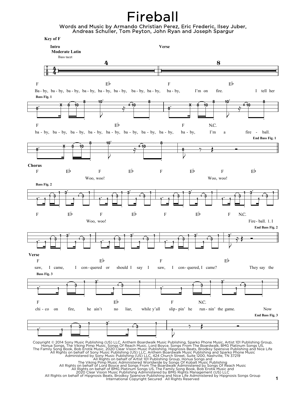 Download or print Pitbull feat. John Ryan Fireball sheet music, chords and digital score arranged for Easy Bass Tab. This Pop score includes 3 page(s).
