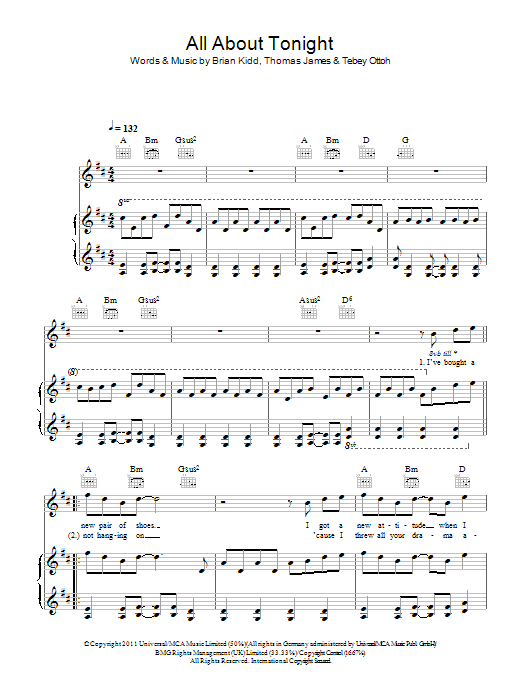 Download or print Pixie Lott All About Tonight sheet music, chords and digital score arranged for Piano, Vocal & Guitar Chords. This Pop score includes 4 page(s).