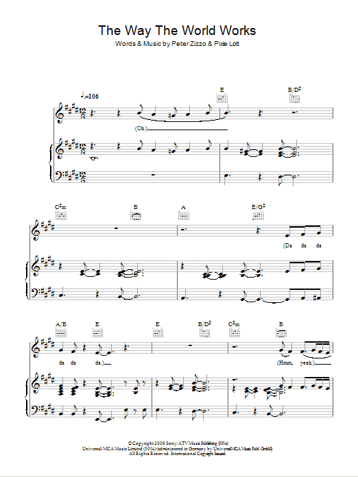 Download or print Pixie Lott The Way The World Works sheet music, chords and digital score arranged for Piano, Vocal & Guitar Chords. This Pop score includes 7 page(s).