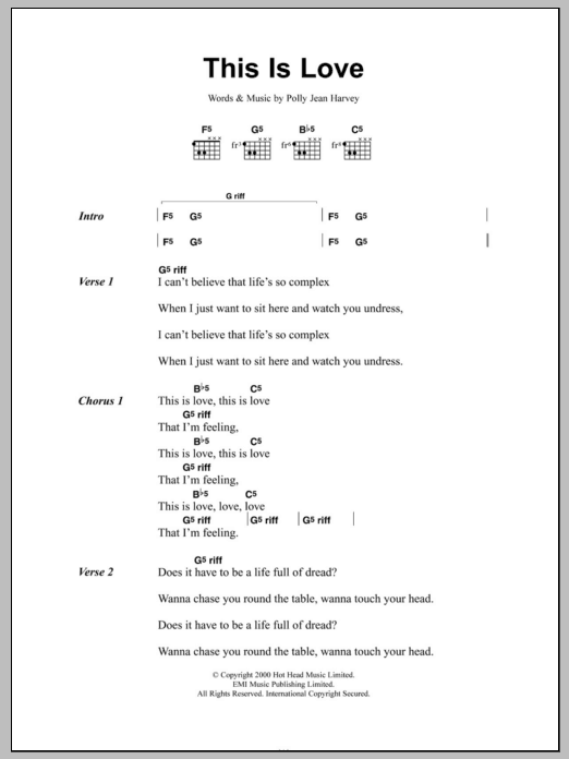 Download or print PJ Harvey This Is Love sheet music, chords and digital score arranged for Guitar Chords/Lyrics. This Rock score includes 3 page(s).