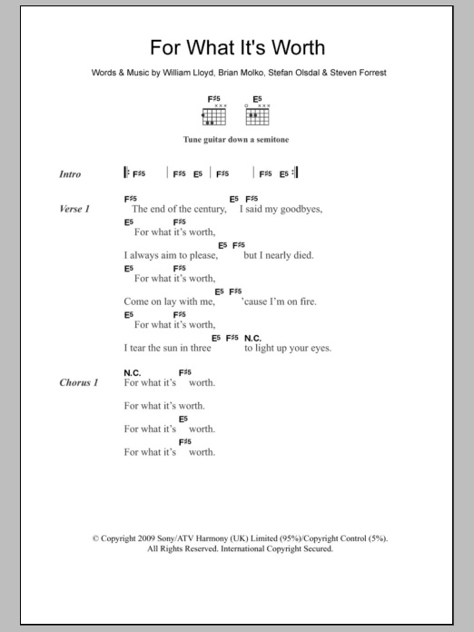 Quick facts For What It's Worth about digital sheet music