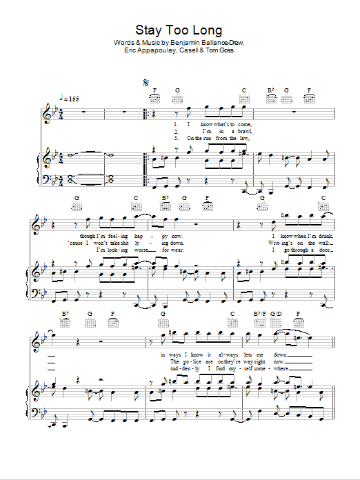 Download or print Plan B Stay Too Long sheet music, chords and digital score arranged for Guitar Chords/Lyrics. This Pop score includes 3 page(s).