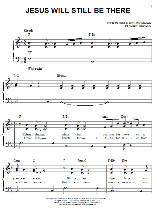 Download or print Point Of Grace Jesus Will Still Be There sheet music, chords and digital score arranged for Piano, Vocal & Guitar Chords (Right-Hand Melody). This Christian score includes 5 page(s).