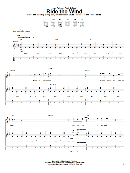 Download or print Poison Ride The Wind sheet music, chords and digital score arranged for Guitar Tab. This Metal score includes 10 page(s).