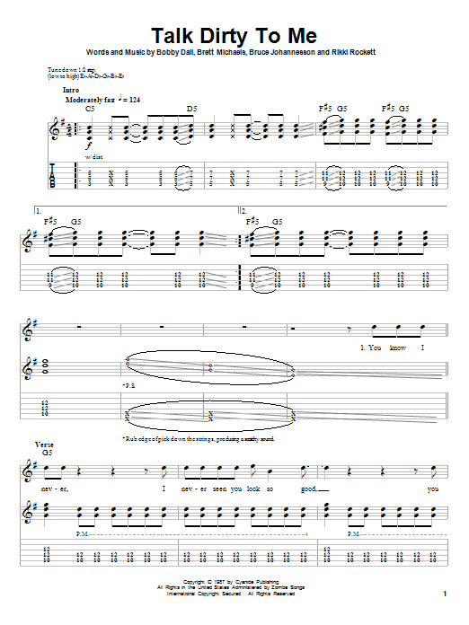 Download or print Poison Talk Dirty To Me sheet music, chords and digital score arranged for Really Easy Guitar. This Rock score includes 2 page(s).