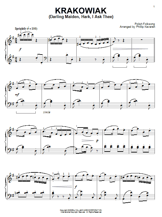 Download or print Polish Folksong Krakowiak (Darling Maiden, Hark, I Ask Thee) sheet music, chords and digital score arranged for Piano, Vocal & Guitar Chords (Right-Hand Melody). This Folk score includes 2 page(s).