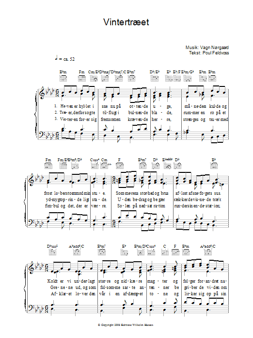 Download or print Poul Feldvoss Vintertraeet sheet music, chords and digital score arranged for Piano, Vocal & Guitar Chords. This Pop score includes 2 page(s).