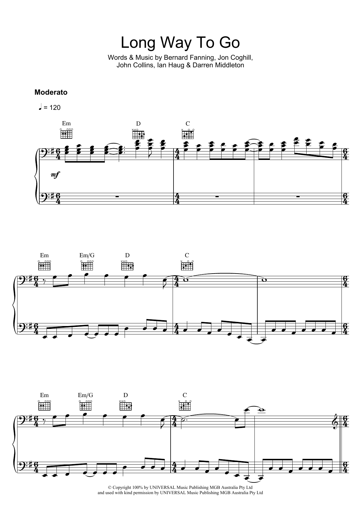 Download or print Powderfinger Long Way To Go sheet music, chords and digital score arranged for Piano, Vocal & Guitar Chords. This Rock score includes 5 page(s).