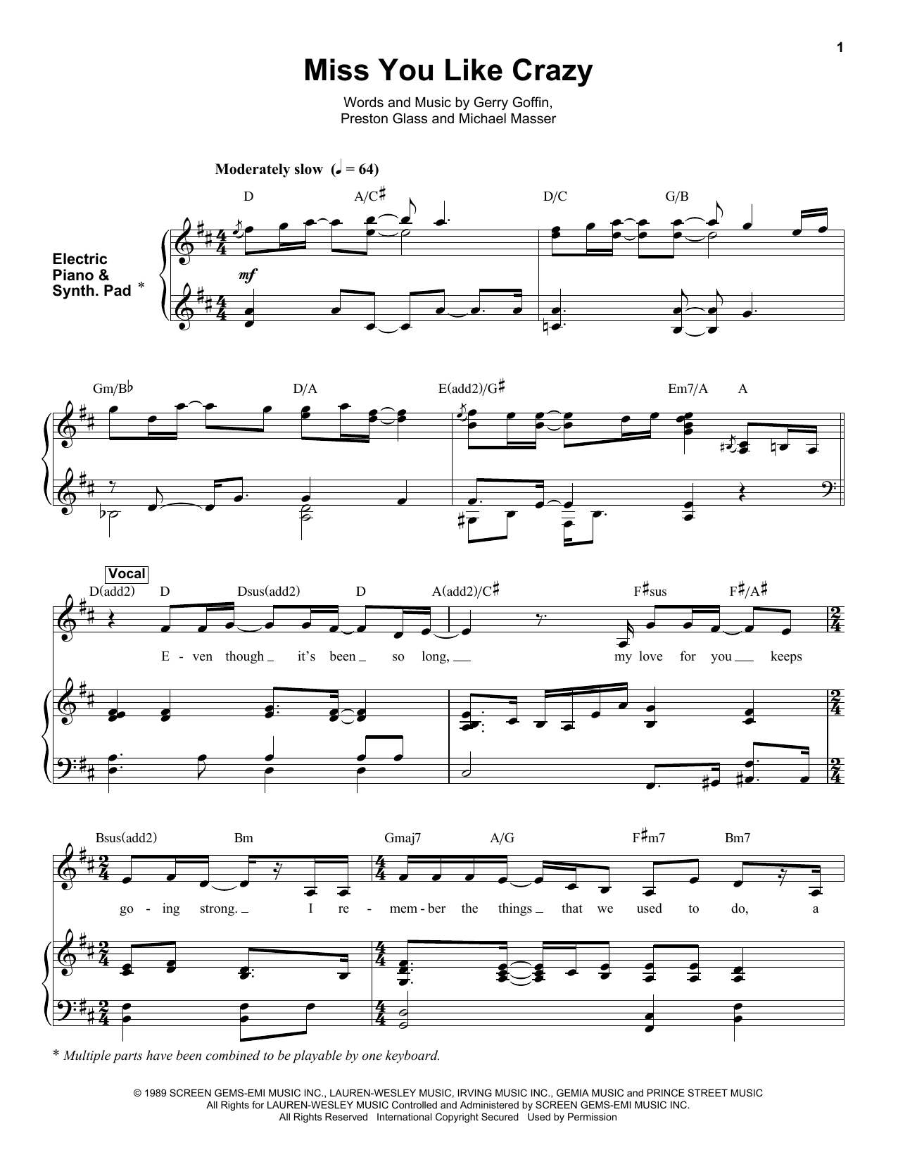Download or print Preston Glass Miss You Like Crazy sheet music, chords and digital score arranged for Keyboard Transcription. This Pop score includes 10 page(s).
