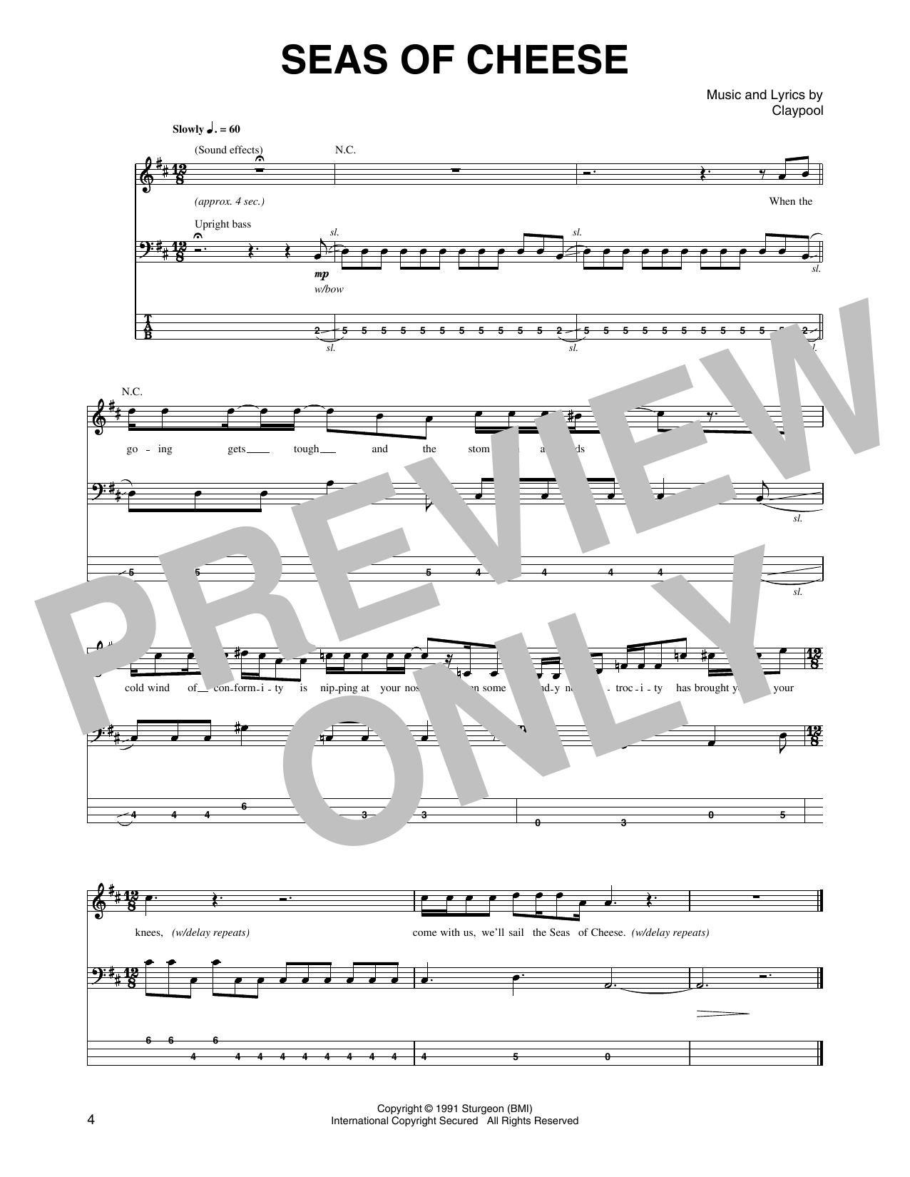 Download or print Primus Seas Of Cheese sheet music, chords and digital score arranged for Guitar Tab. This Rock score includes 1 page(s).