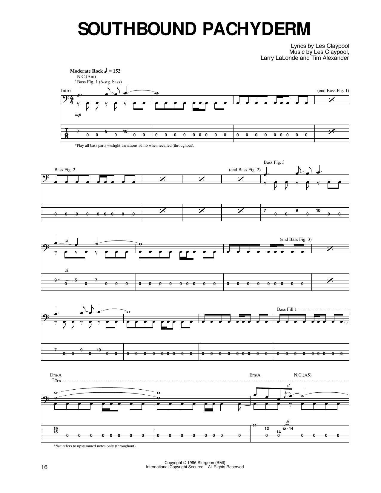 Download or print Primus Southbound Pachyderm sheet music, chords and digital score arranged for Guitar Tab. This Rock score includes 17 page(s).