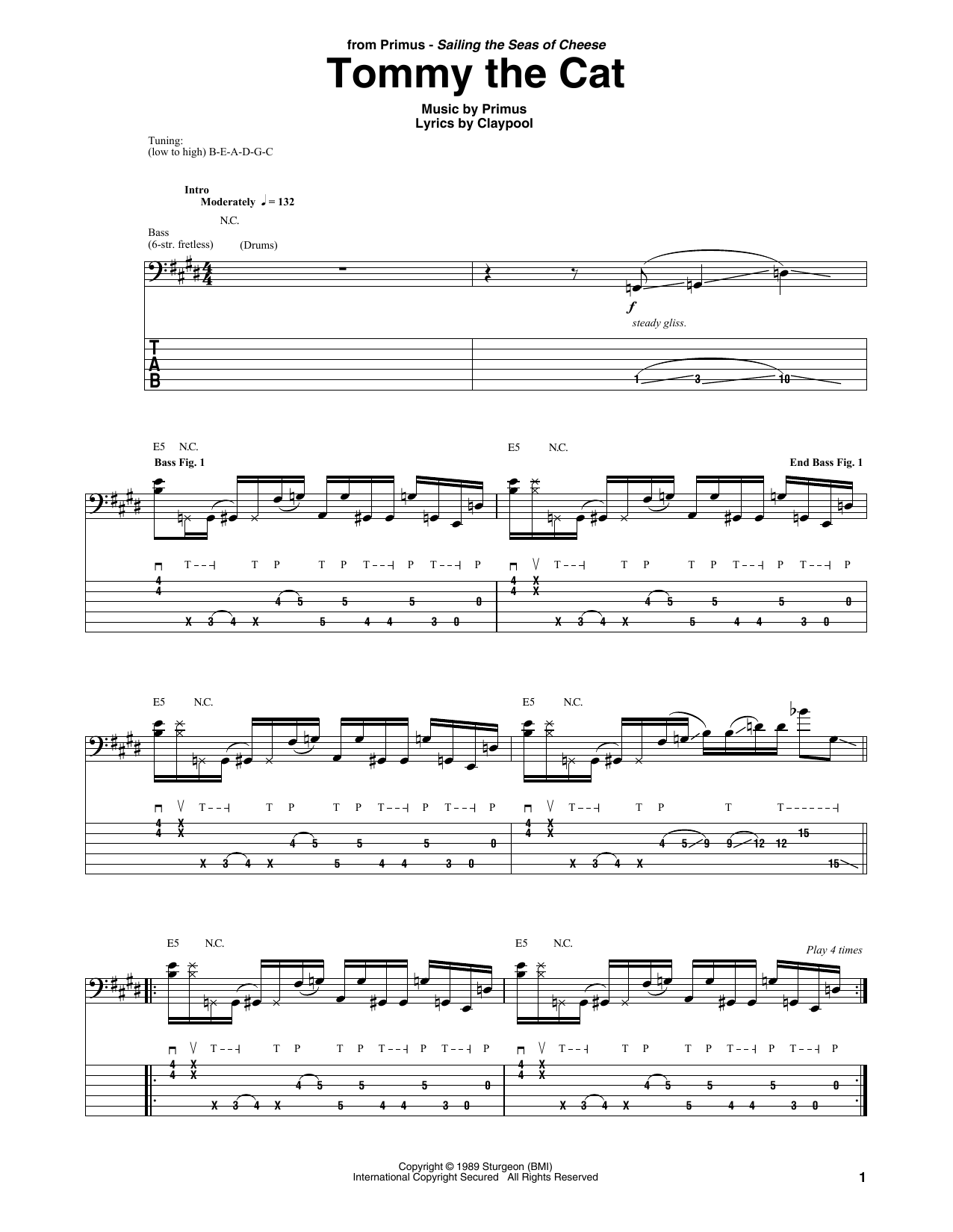 Download or print Primus Tommy The Cat sheet music, chords and digital score arranged for Guitar Tab. This Rock score includes 11 page(s).