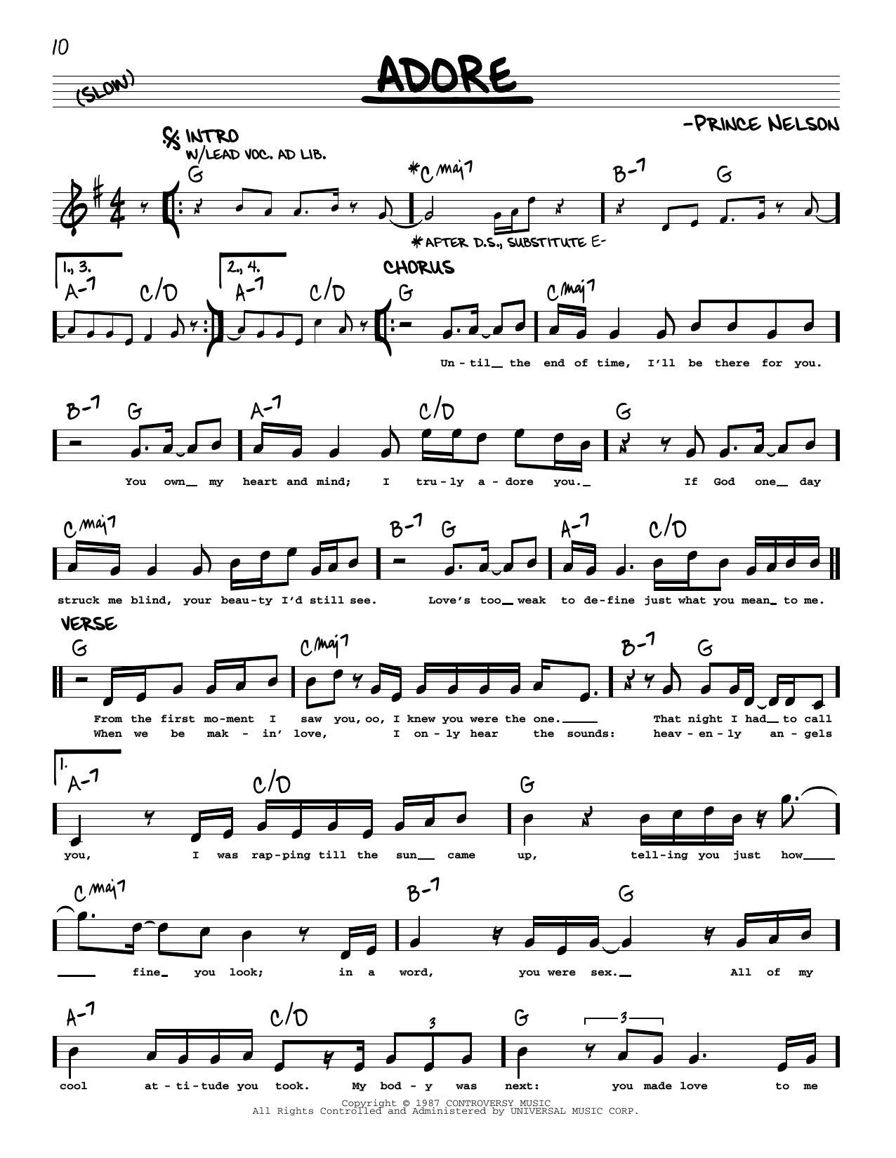 Download or print Prince Adore sheet music, chords and digital score arranged for Piano, Vocal & Guitar Chords. This Pop score includes 8 page(s).