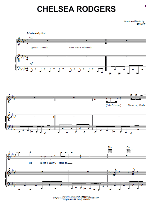 Download or print Prince Chelsea Rodgers sheet music, chords and digital score arranged for Piano, Vocal & Guitar Chords (Right-Hand Melody). This Pop score includes 16 page(s).