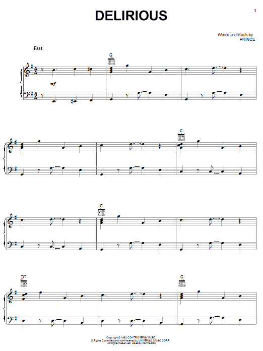 Download or print Prince Delirious sheet music, chords and digital score arranged for Easy Piano. This Pop score includes 4 page(s).