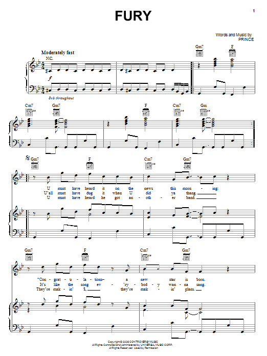 Download or print Prince Fury sheet music, chords and digital score arranged for Guitar Tab. This Pop score includes 11 page(s).