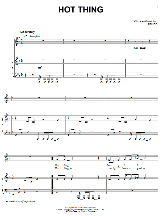 Download or print Prince Hot Thing sheet music, chords and digital score arranged for Easy Piano. This Pop score includes 4 page(s).