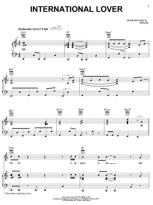 Download or print Prince International Lover sheet music, chords and digital score arranged for Piano, Vocal & Guitar Chords (Right-Hand Melody). This Funk score includes 7 page(s).