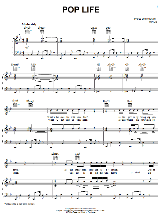 Download or print Prince Pop Life sheet music, chords and digital score arranged for Piano, Vocal & Guitar Chords (Right-Hand Melody). This Rock score includes 4 page(s).